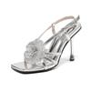 Fashion Luxury Rhinestones Flowers Decor Women Gladiator Sandals Fashion Square Toe Summer Slingbacks Stiletto High Heels Summer Shoes