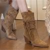 Fashion New Style Vintage Women's Spring and Autumn Retro Fashion Boots Thick Heel Long Tube Slim Stacked Middle Tube Boot Zapatos Mujer