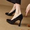 Fashion Spring and Autumn New Style Popular Waterproof Platform Slip-on Shoes Fashionable Banquet Work Shoes Pointed Toe Thin Heels