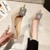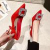 Fashion Women Shoes Fashion Rhinestone Square Buckle Bridesmaid Wedding Shoes Solid Flock Pointed Toe Stiletto Pumps French High Heels
