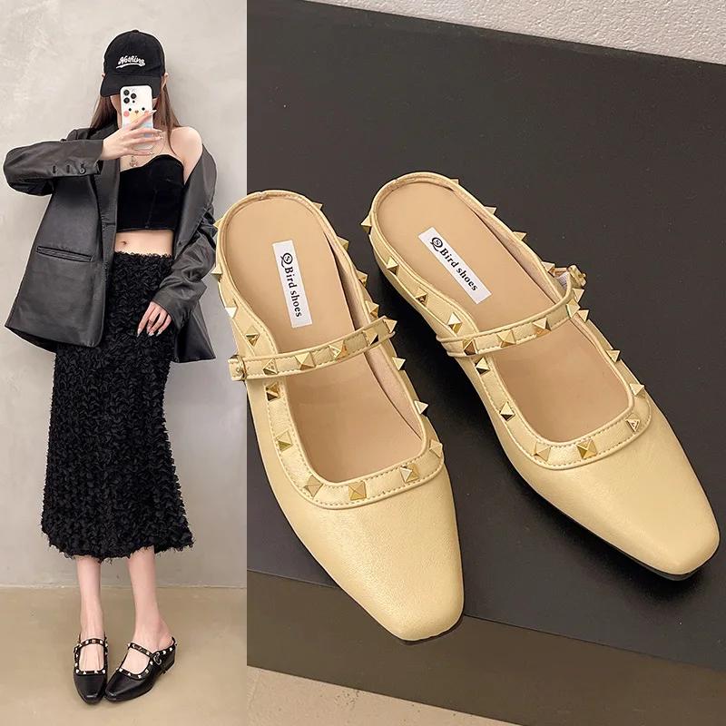 Fashion Cover Toe Shoes Increased Internal Low Rivet House Slippers Platform Slides Summer PU Rome Fabric Rubber Hoof Heels