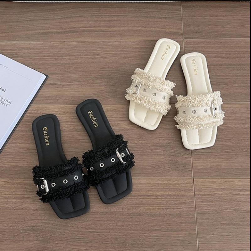Fashion 2025Sweet Holiday Plush Edge Slippers Fashion Non-Slip Flat Sole Sandals Comfortable Soft Vacation Shoes Outdoor