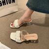 Fashion Square Low Heel Woman Sandals 2024 Summer Weave Designer Open Toe Fashion Mid Heels Leather Casual Outside Lady Beach Shoes