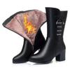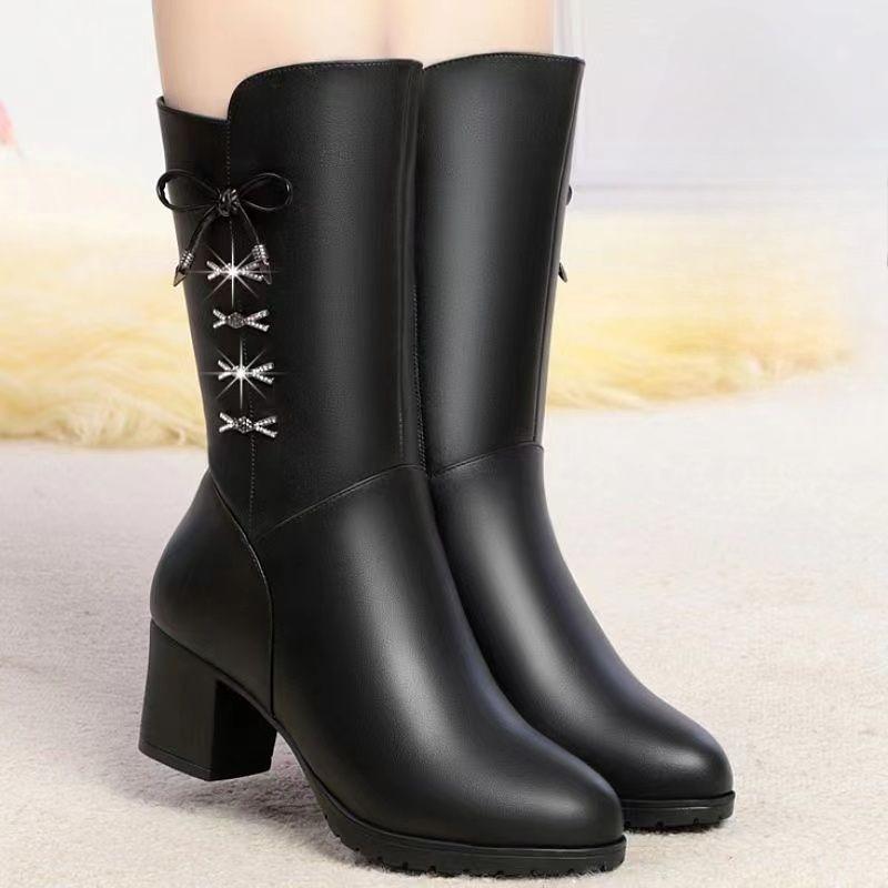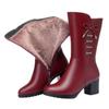 Fashion Autumn Winter Fleece-Lined Leather Round Toe Mid Calf Shoes Woman Gothic Fashion 2025 Middle Heel Warm Half High Boots for Women