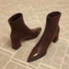 Fashion Brown Women Ankle High Heels Pointed Toe Shoes Goth Designer Pumps Winter 2025 New Shoes Women Motorcycle Boots