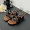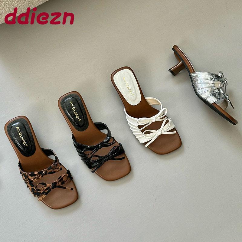 Fashion Elegant Women Medium Heels Pumps Shoes Female Butterfly-Knot Footwear Fashion Square Toe Ladies Thin Heels Shoes Sandals Slides