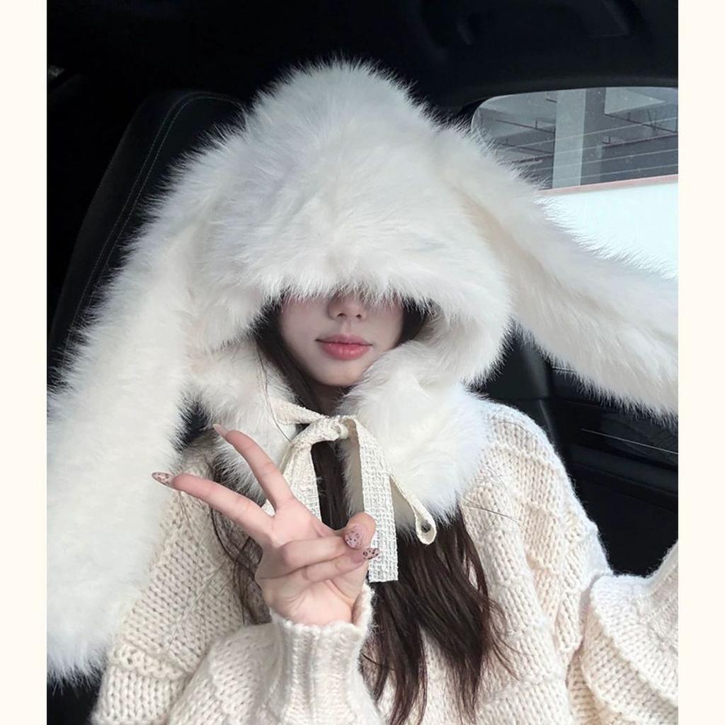 Winter Plush New Ear Protection Rabbit Lei Feng Hat Cute Integrated Thickened Rabbit Hair Cold Proof and Plush Warm Hat