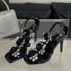 Fashion Liyke Crystal Gem Rose Flowers Designer Sandal Female Elegant Square Toe White High Heels Party Dress Shoe Women Sandalias Mujer
