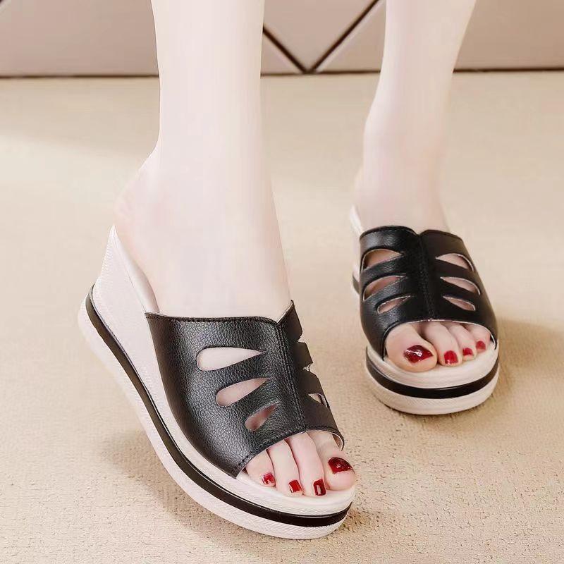 Fashion Shoes for Women Summer Fashion Platform Wedges Comfortable Slip On Slippers Casual Beach Shoes PU Non-slip Sandalias De Mujer
