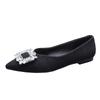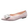 Fashion Luxury Striped Fabric Flats Women Sparkle Stone Shoes Ladies Ballets Pointed Toe Office Dress Loafers Woman Brides Wedding Shoes