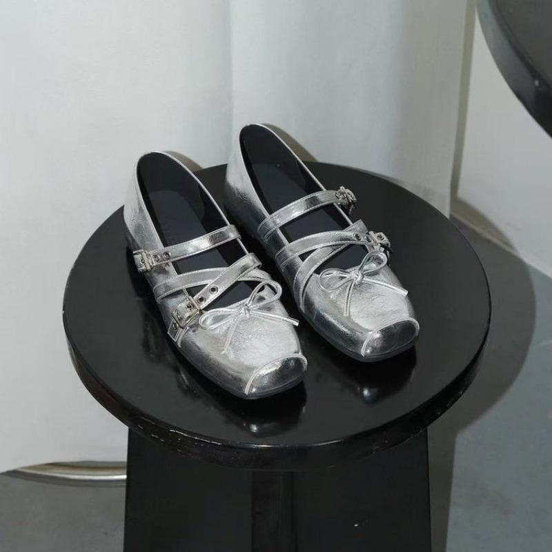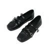 Fashion Women's Flat Shoes Summer New Square Head Shallow Mouth Butterfly Knot Rivet Metal Buckle Soft Sole Low Top Shoes