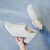 Fashion Leather Soft Leather High Heels Women's Single Shoes British Style Retro Deep Cut Square Toe Lace Up 2024