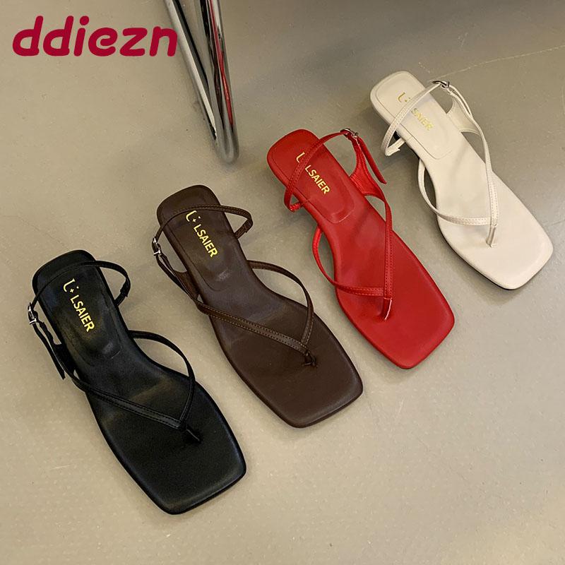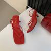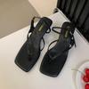 Fashion Fashion Square Toe Women Heeled Sandals Shoes Female Flip Flops Spring Summer Buckle Ladies Medium Heels Sandals Shoes Pumps