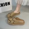 Fashion 2025New Anti-slip Summer Women Slippers Square Toe Soft-soled Square Toe Flat Sandals Solid Color Comfortable Ladies Mules
