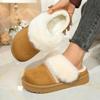 Fashion 2025 Women's Winter Thickened Fleece Lined Slip-On Cotton Slippers Style Platform Snow Boots Round Toe Flat Heel Shoes