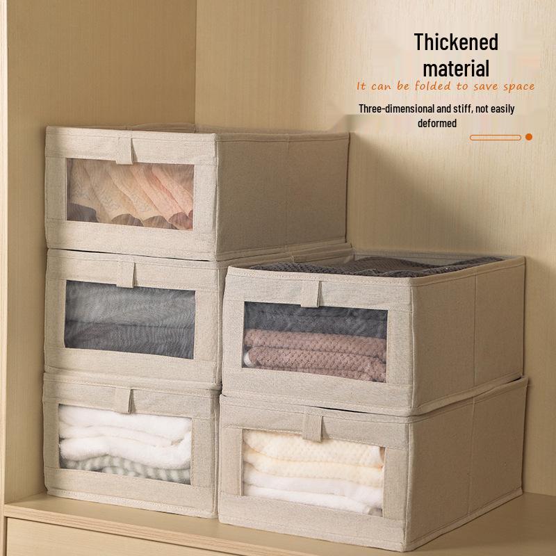 Cotton & Linen Foldable Storage Box with Window for Clothes