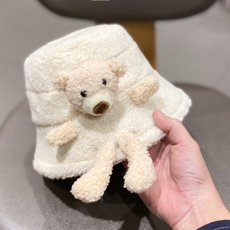 Hat Female Autumn and Winter Versatile Lamb Wool Bear Bucket Hat Cute Cute Cute Warm Basin Hat