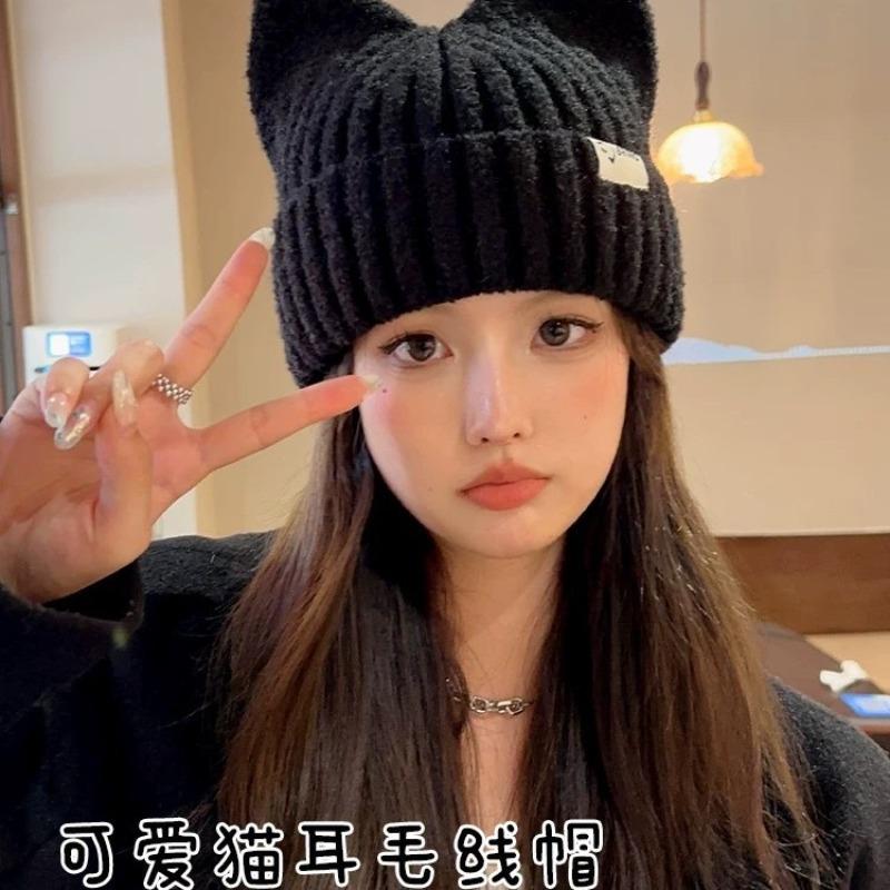 Cat Ears Wool Hat Women's Autumn and Winter Warm Cute Knitted Hat Casual Versatile Soft Girl Cold Hat