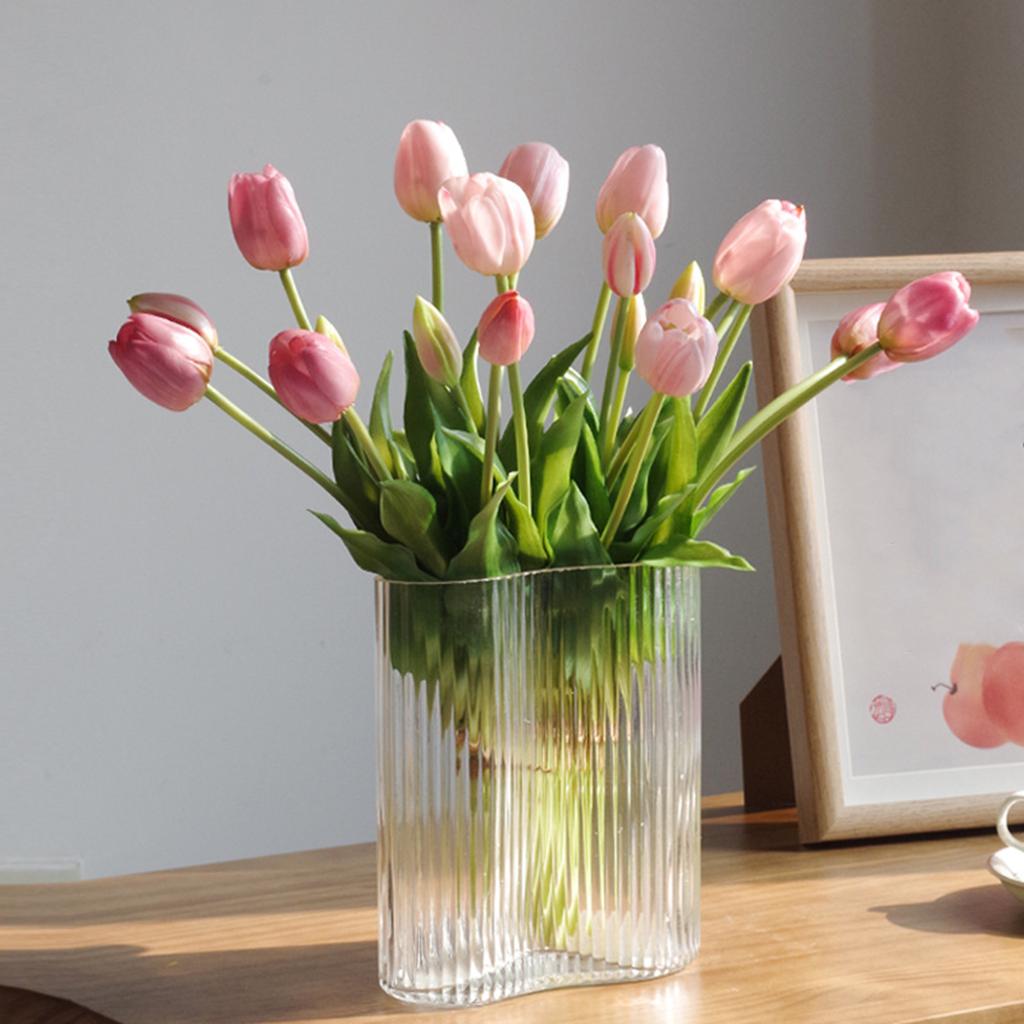 3 Bouquets Man-Made Tulip Flowers Fake Flowers Real Feel Latex Bouquet Home Office Wedding Party Desktop Decoration Garden