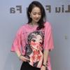 Summer Short Sleeve T-Shirts Women Summer O Neck Cartoon Girl Printed Diamonds Beading Casual Oversized T Shirt Lady Clothes
