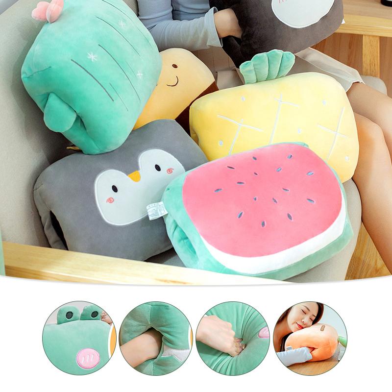 Cartoon Plush Pillow Stuffed Hand Cushion Home Office Car Travel Warmer Winter Plush Toy Students' Nap