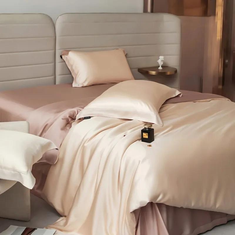 Queen Size Soft Silky Skin Friendl Sleeping Naked Lyocell Bedding Set Duvet Cover Set Bed Sheet Pillowcases