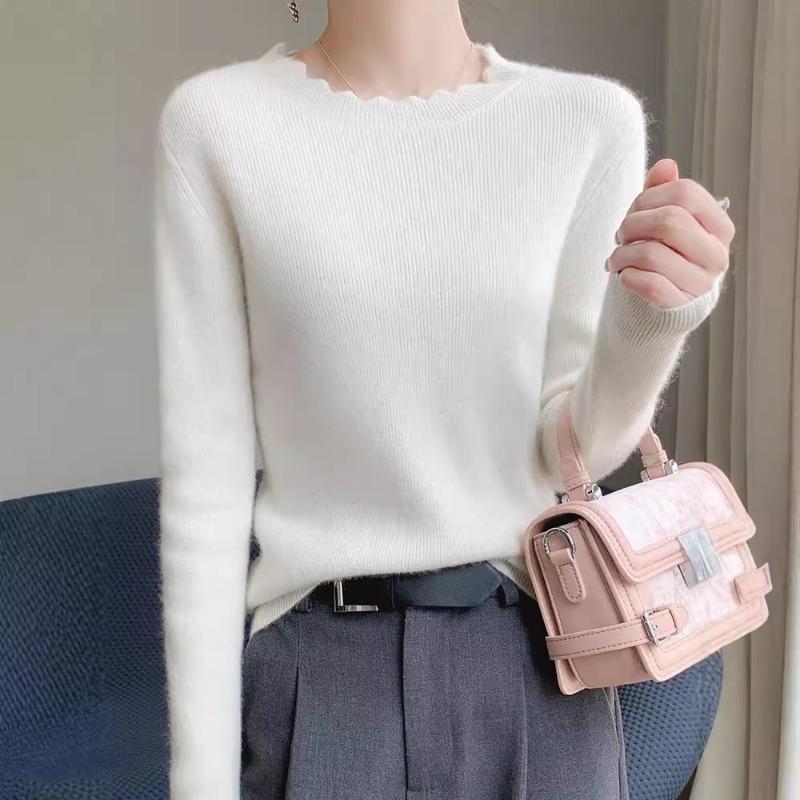 Fashion Lace Crew Neck Bottom Shirt Women's Autumn and Winter New Skinny Inner Long Sleeve Knitted Sweater Pullover Top