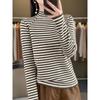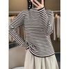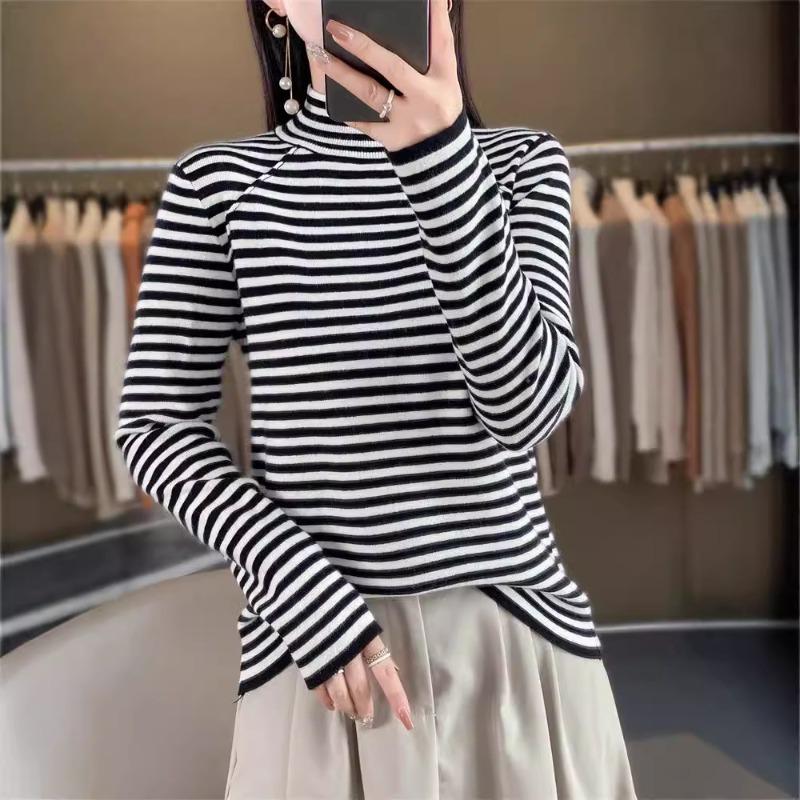 Autumn and Winter Women's Knitted Sweater New Semi-turtleneck Striped Bottoming Shirt with A Thin Long-sleeved Sweater