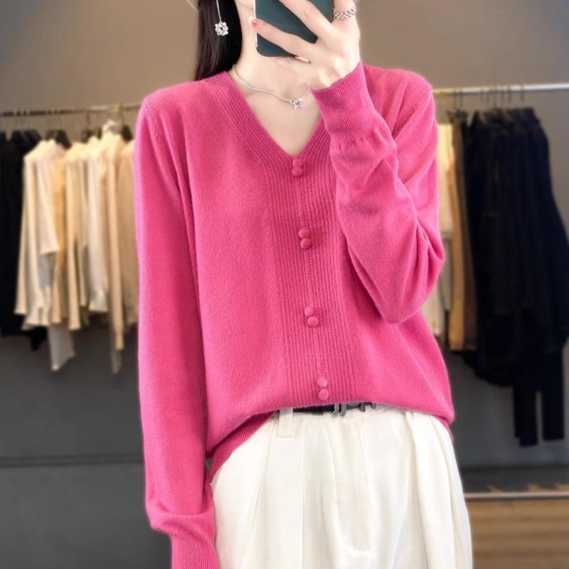 V-neck Sweater Women's Autumn and Winter New Knitted Sweater Versatile and Thin Bottoming Shirt Wool Inner Top Women's Clothing