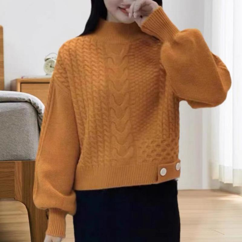High-texture Semi-turtleneck Sweater Women's Pullover, Thick Autumn and Winter Retro Loose and Thin Long-sleeved Knitted Sweater