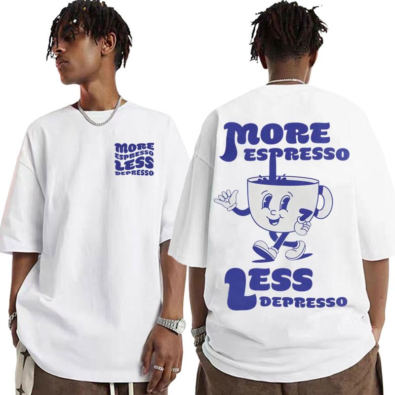 Funny More Espresso Less Depresso T-shirt Cute Espresso Aesthetic Retro Coffee T Shirt Men Women's Casual Trending Cotton Tshirt