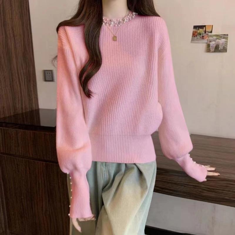 Autumn and Winter New Sweater Women's Temperament Elegant and Thin Heavy Industry Beaded Knitted Sweater Bottoming Top Tide