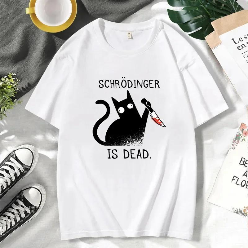 Schrodinger Is Dead Black Cat Fashion Soft T-Shirt Man High Quality T-Shirts Oversized T Shirts Cotton Short Sleeve Street Tops