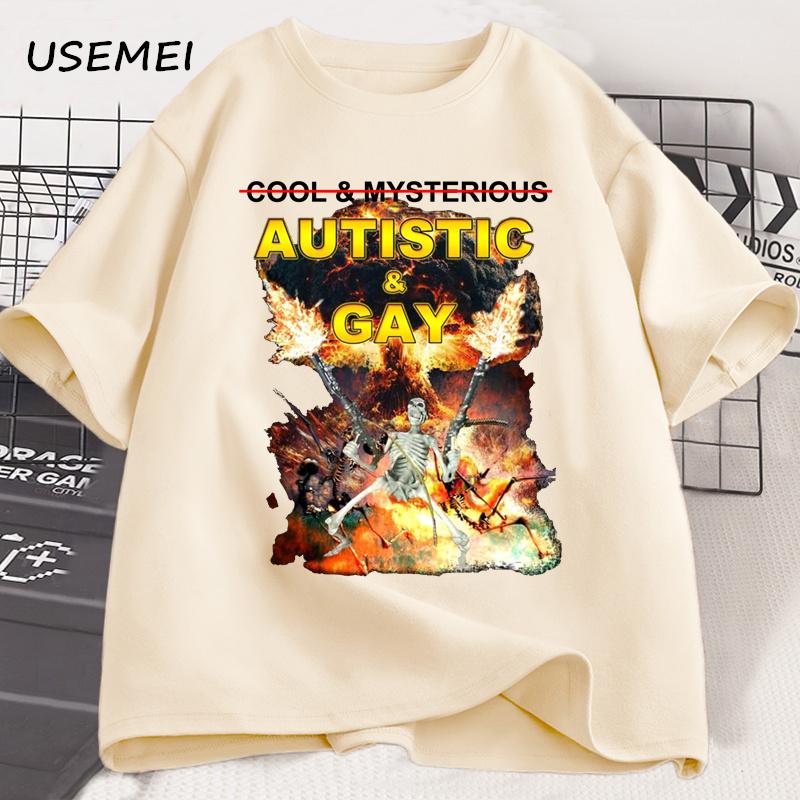 Autistic and Gay Skeleton Explosion T-Shirt Unhinged Graphic T Shirts Cursed Skeleton Autism Meme Tshirt Men Women Tees Clothes