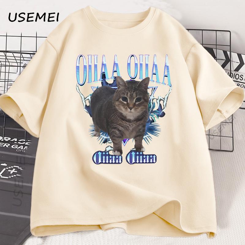 Spinning Cat Meme Funny Oiia Cat T-shirt Men Women Harajuku Round Neck Short Sleeve Tee Shirt Men's Clothing Streetwear Tops