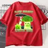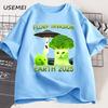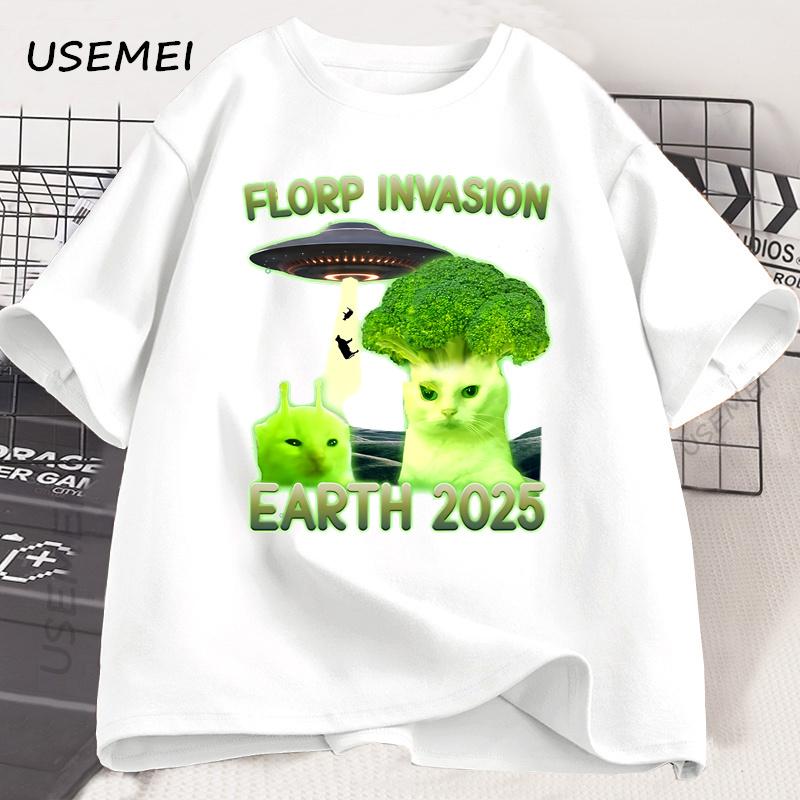 Funny Alien Brainrot Cat T-Shirt Broccoli Cat Printed Tshirt Cotton Short Sleeve Round Neck T Shirt Men's Clothes Streetwear