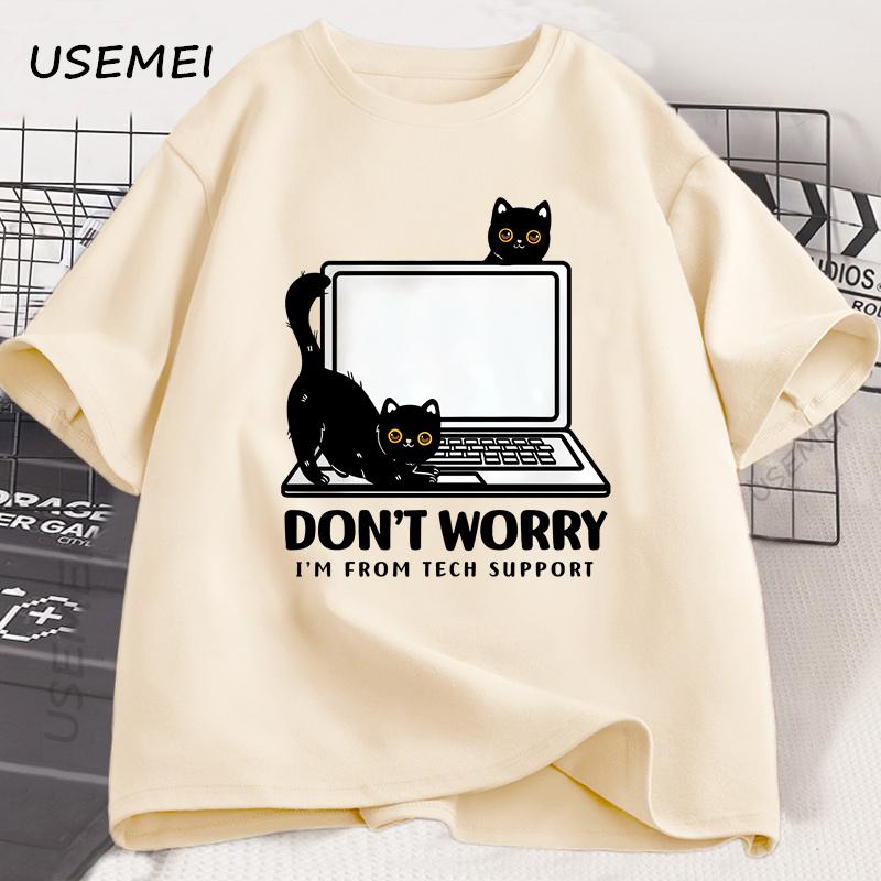 Don't Worry I'm From Tech Support Cat T Shirt Funny Cat T-Shirt Cat Lover Tee Gift Clothes Summer Cotton Short-sleeve