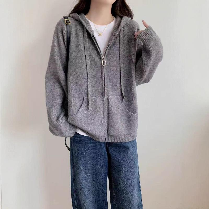 Lazy Wind Hooded Sweater Jacket Women's Autumn and Winter New Loose Casual Zipper Knitted Cardigan Jacket