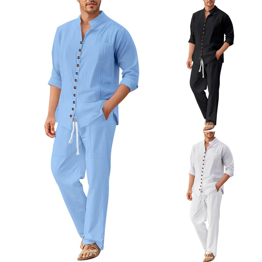 Men's Shirt And Trousers Suit Men's Casual Loose Long Sleeved Trousers Beach Suit