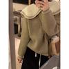 Contrasting Color Doll Collar Sweater Female Spring and Autumn Small Lazy Wind Loose Soft Waxy Sweet Thickened Knitted Top