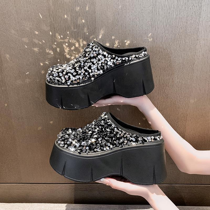 Fashion 8.5CM New Bling Platform Women Slippers Fashion Chunky High Heeled Sandals Comfort Roma Style Round Toe Slide Mule Shoes Summer