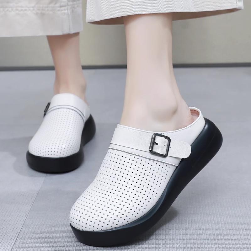Fashion GKTINOO 2025 Summer New Genuine Leather Soft Sole Platform Slippers Handmade Hollow Sandals Women's Shoes Outside Slides