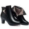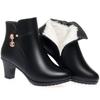Fashion Women Leather Boots 2025 Winter Thick Plush Lined Warm Snow Boots Plus Size 42 Women Fashion Autumn Black High Heels Ankle Boots