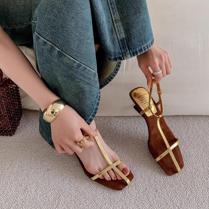 Fashion Women Open-toe Special-shaped Wedge Heels Sandals Summer New Roman Style Retro Thin-strap Solid Color High-end Holiday Sandals