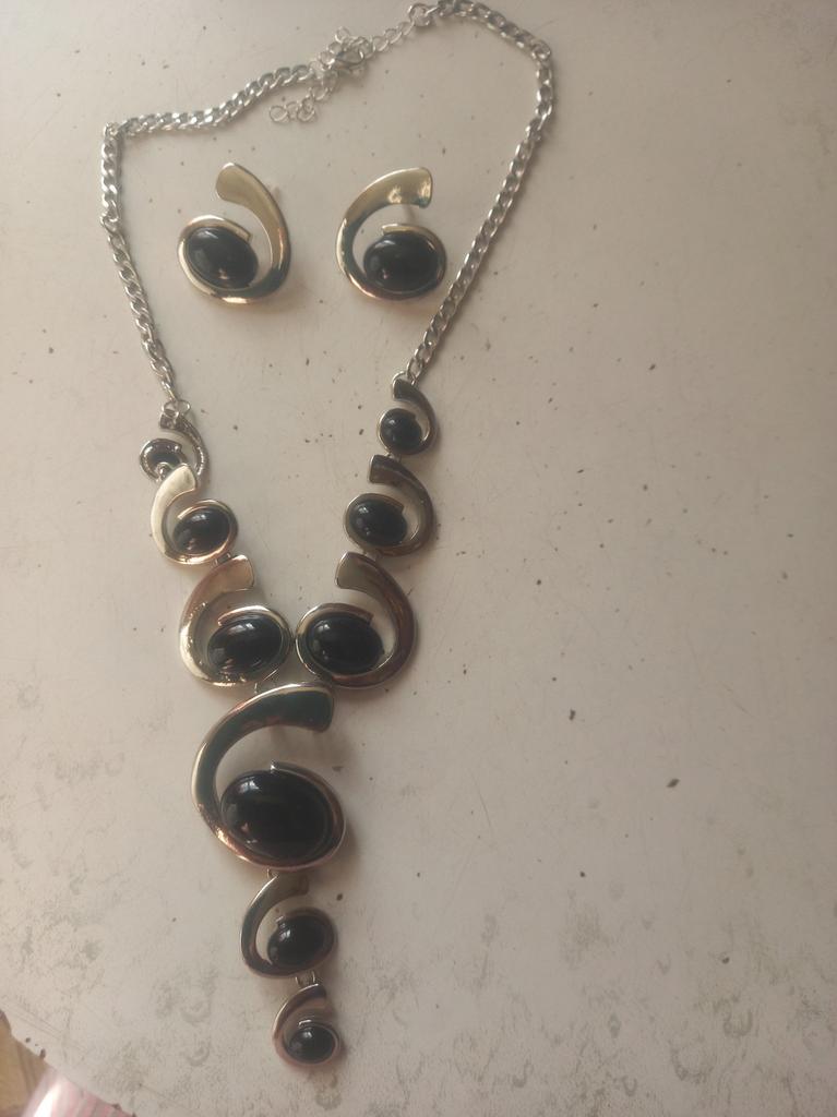 1 Set Boho Classic 2pcs Women'S Jewelry Set, Spiral Snail Shape with Black Rhinestone Inlay, Y-Necklace and Earrings
