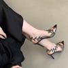 Fashion 2025 Summer New Pointy Gold High Heels Women's Stiletto Leaves Elegant Fairy Sexy Banquet Transparent Sandals