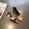 Fashion New Style Fashion Sexy PU Shallow Slim High HeelsWomen's Pointed Open Toe Outdoor Solid Color Anti Slip Sandals Slippers Mules