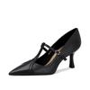 Fashion 2025 Genuine Leather Office Ladies Pumps Pointed Toe T-strap Thin High Heels Janes Leather Shoes For Women Dress