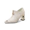 Fashion 2025 Autumn New Fashion Women's Sexy Soft High Heels Nude Boots Black Zipper Comfortable Leather Metal Pointed Pumps