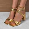 Fashion High Heeled Sandals for Women, Summer New Item, Thick Heel, Metal Stone Pattern, Cross Buckle Women's Fashionable Women's Shoes
